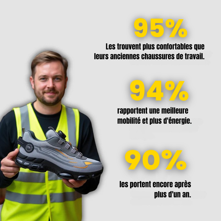 Nous pensons qu’une bonne sécurité au travail ne doit pas nécessairement être lourde, rigide ou inconfortable. C’est pourquoi nous nous concentrons sur un design bien pensé, des matériaux légers et une fonctionnalité maximale, sans compromettre la sécurité.